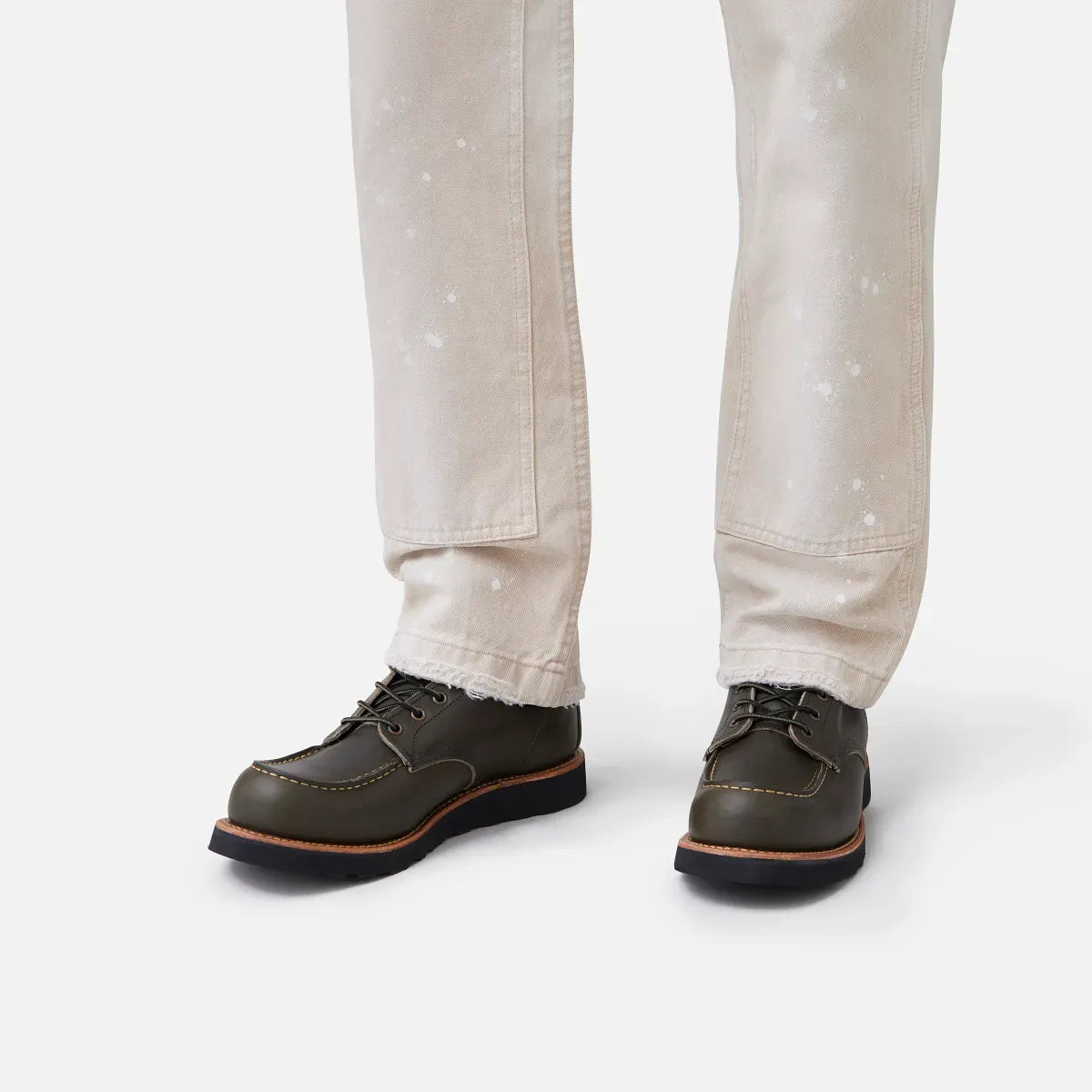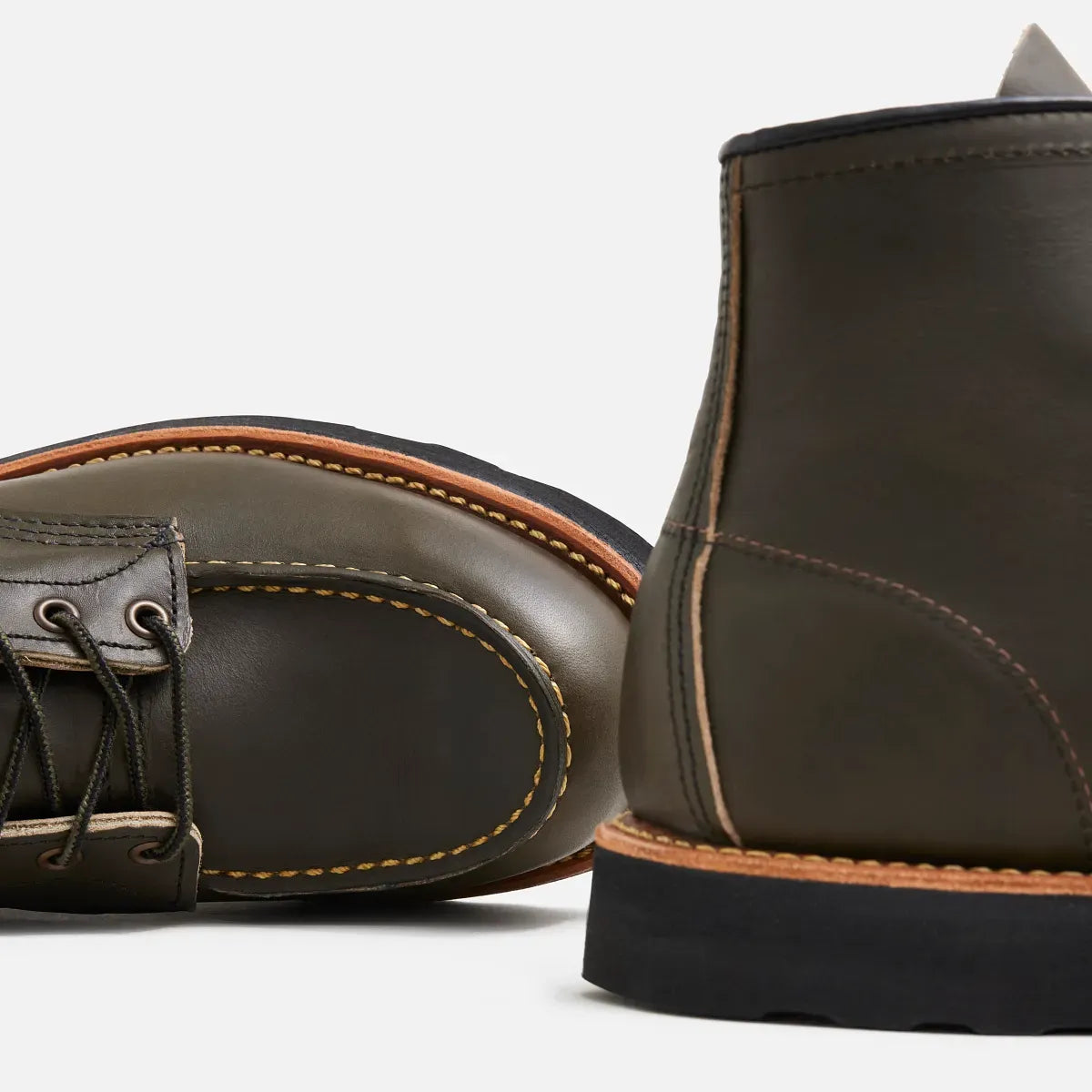 บูทหัวจีบ (Moc Toe) ความสูง 6 นิ้ว โมเดลคลาสสิกของ Red Wing ที่ในคู่นี้ตัวรองเท้าจะใช้หนัง Portage Leather สี Alpine สีเขียวเอิร์ธโทนแรงบันดาลใจจากธรรมชาติ อีกสีสันที่แมทช์ได้ดีกับกางเกงตัวเก่งของเรา เป็นหนัง Full Grain ซึ่งผ่านกระบวนการฟอกน้ำมัน โดดเด่นเรื่องสัมผัสที่มีความเป็นธรรมชาติและทนทาน กันน้ำ คราบสกปรก เหงื่อไคลได้อย่างดี ยิ่งใช้งานยิ่งเก่ายิ่งสวย มาพร้อมพื้น Traction Tred สีดำ เย็บเดินด้ายสี Champagne (สีเหลืองอ่อน - Pale Yellow) ตัดกันลงตัว